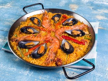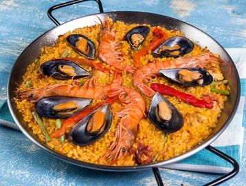 Paella de mariscos precio por persona 12,90 € minimo 2 personas ( Nota las paellas las serviremos en tapers si la quiere en la paellera se le cobrara la paellera 20 € que se le devolveran una vez que uste la traiga en buen estadoAgrega una descripción de este artículo