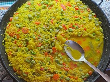 Paella de verdura precio por persona 12,90 € minimo 2 personas ( Nota las paellas las serviremos en tapers si la quiere en la paellera se le cobrara la paellera 20 € que se le devolveran una vez que uste la traiga en buen estadoAgrega una descripción de este artículo